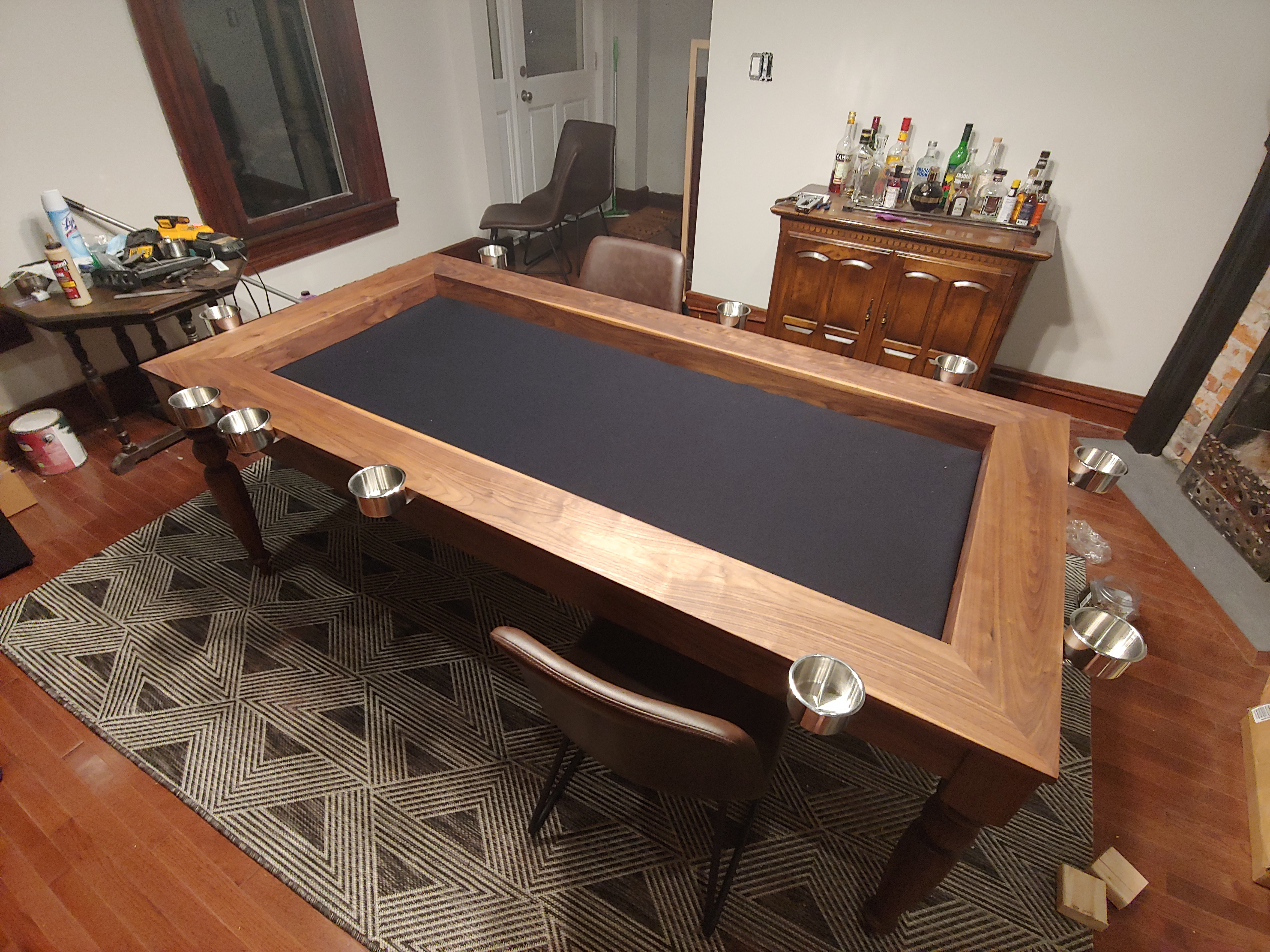 Walnut Board Game Table With Low Profile Removable Cup Inserts Neoprene Surface 6 Inch Ledge Boardgamegeek